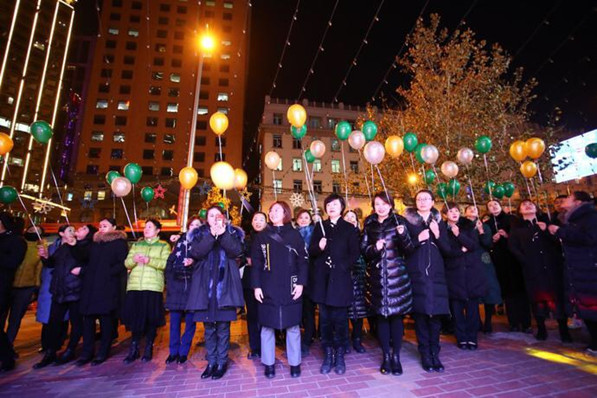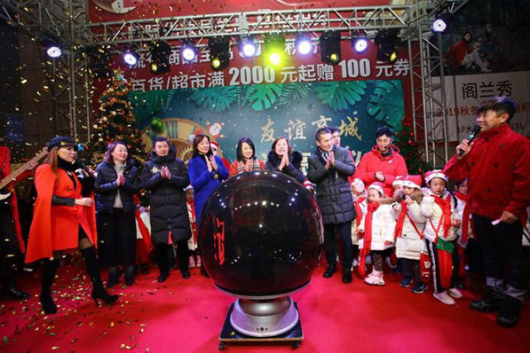 友谊商城的代表和被邀到场的贵宾,共同启动水晶球,正式开启圣诞点灯仪式。