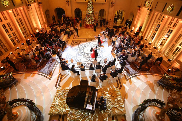 作为东北地区乃至中国区极具代表性的城堡型酒店之一,大连一方城堡豪华精选酒店华丽和传统的欧式古典音乐舞会,高水准的交响乐团为来宾演奏了《莫扎特弦乐小夜曲》、伊凡诺维奇所作《多瑙河之波圆舞曲》、《闻香识女人》等世人熟知的世界名曲。同时,专业的舞者为到场宾客献上了一支支华美的华尔兹舞蹈,现场来宾纷纷融入其中,翩翩起舞,演绎一幅又一幅华美篇章。