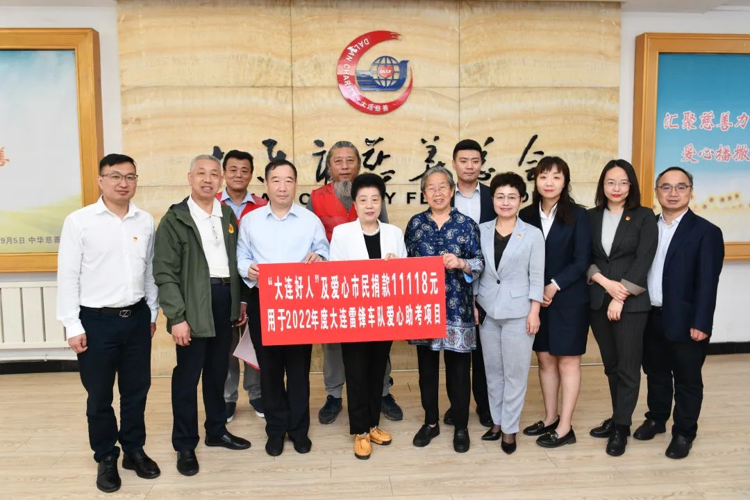 大连好人模范代表盖秀芝、刘福荣、王金海,大连雷锋出租车队的牛成队长、孙庆副队长,北京盈科(大连)党支部的王晓阳、张媛媛、张昊、刘春莹、迟瑞堂律师,爱心市民代表、大连市最美退役军人范振东,负责收集善款的辽宁大宸(大连)律师事务所张艳华律师来到大连市慈善总会,将爱心市民捐赠的11118元善款移交给慈善总会,定向用于参与大连市2022年高考期间“爱心送考”活动的大连雷锋出租车队的司机师傅们的燃油补贴。