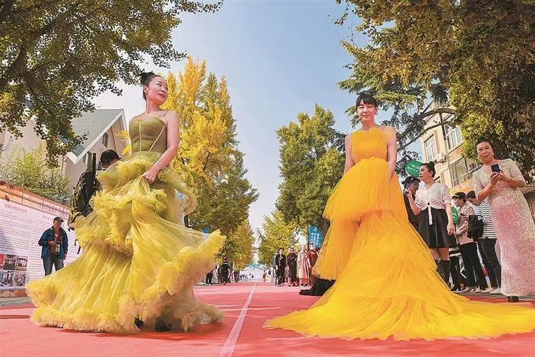 秋风乍起,树木逐渐换上秋装,一幅色彩斑斓的画卷展现在眼前。在我市南山风情街上,银杏长廊褪去绿衣,披上暖人金黄,市民徜徉其中,享受着“秋日胜春朝”的美景。