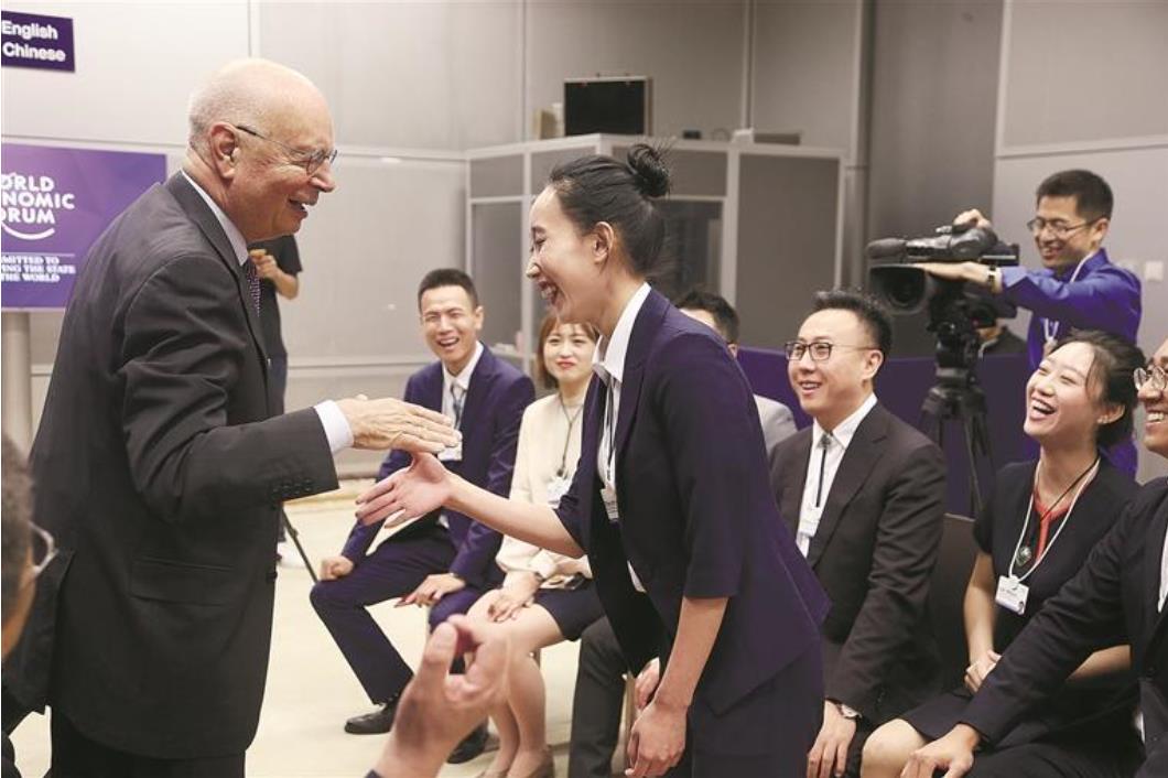 市民代表与世界经济论坛主席施瓦布先生对话(资料图片)。大连新闻传媒集团记者王华 摄