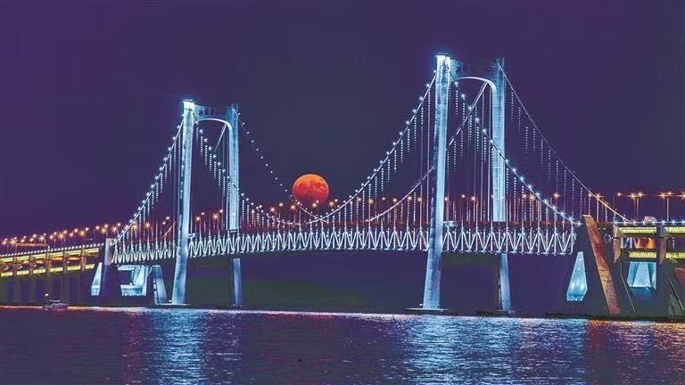 今日是中秋佳节,是本世纪公历日期最晚的中秋节之一,比去年中秋节整整晚了19天。两节期间,不少市民和游客在景区寻找最佳地点拍摄滨城的月亮。图为中秋节前夕拍摄到的星海湾大桥上空的圆月。 常江 摄