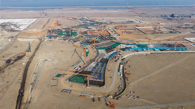 大连金州湾国际机场航站楼轮廓正愈发清晰。安晓晨 摄(大连国际机场集团提供)
