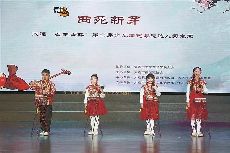 本报讯(李灿 大连新闻传媒集团记者彭杭)薪火相传,曲韵流芳。12月20日,由大连市文学艺术界联合会指导,大连市曲艺家协会主办,大连长生湾食品有限公司、各区市县曲艺家协会承办,大连市非物质文化遗产保护中心支持的“曲苑新芽”大连“长生岛杯”第二届少儿曲艺非遗达人秀竞赛活动总决赛圆满落下帷幕。