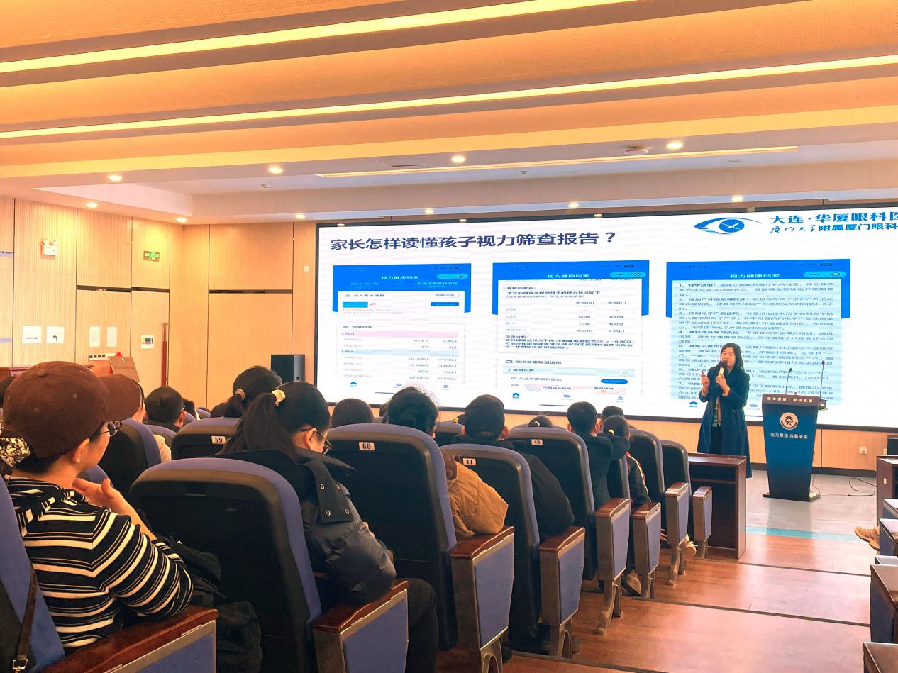 作为活动的重磅环节,大连华厦眼科医院业务院长、知名近视防控专家卢燕教授为到场学生家长带来了一场深入浅出的近视防控科普讲座。卢教授结合丰富的临床案例,详细讲解了近视的成因、发展规律、危害以及科学防控的具体方法,尤其强调了家庭在近视防控中的关键作用,纠正了诸多常见误区,为家长们提供了科学、实用的指导,赢得了现场阵阵掌声。