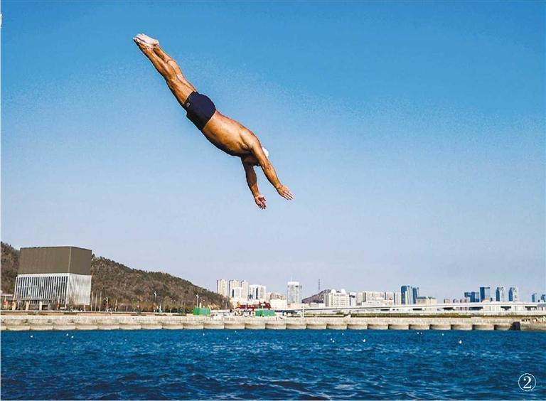 与傅家庄的温婉不同,高新区凌水湾雕塑公园成为近几年新火起来的冬泳打卡地。来这里的大都是上班一族,他们冬泳大都集中在午休时间,本是寂静的防波大坝一下子活跃起来,五颜六色的泳衣飞身跃入大海,酣畅淋漓。大连天然的冬泳资源让来自沈阳的冬泳爱好者韦怡心仪已久,他说,大连的水温好,海水冬天不冷,气候和环境也无与伦比,面对湛蓝海水,不尽情游一圈,感觉都对不起自己这份爱好。被泳友们誉为“雕塑公园花木兰”的红姐更是感慨:“从前怕冷,现在一天不下水浑身不自在。”这种从“挑战”到“热爱”的转变,正是大连冬泳文化生动的注脚。