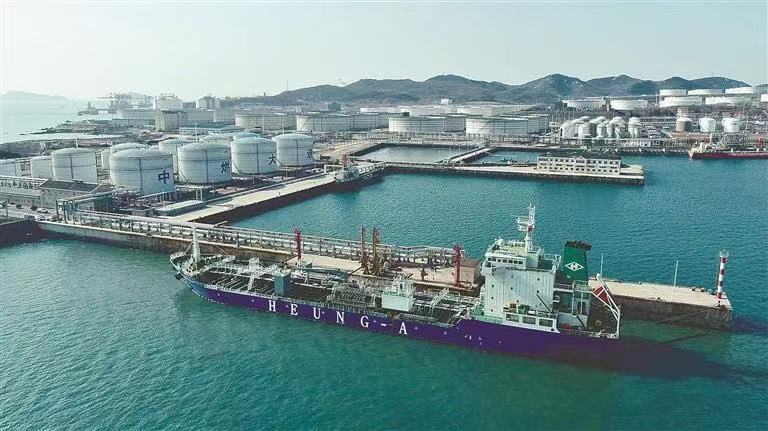 “兴亚先锋2号”轮靠泊大连能源港区8号泊位。于忠洋 摄(大连边检站提供)