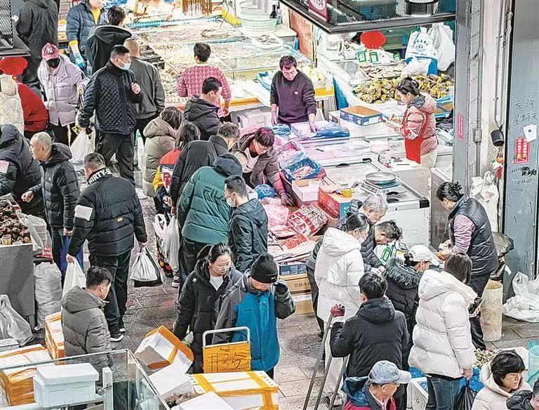 海鲜市场人潮涌动 “大连鲜”撑起年货排面