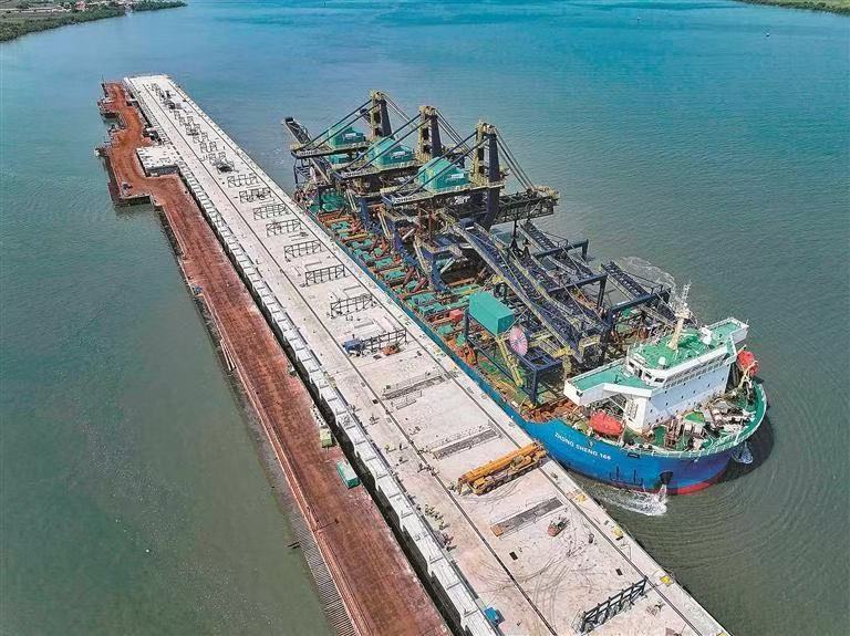 (大连新闻传媒集团/大连云记者杜杨楠)近日,载有三台额定能力7660吨/小时装船机的巨轮稳稳靠泊几内亚马瑞巴亚港码头。随着船上设备陆续滚装卸运,大连重工装备集团旗下大连华锐重工集团股份有限公司(以下简称“大连重工”)为西芒杜铁矿项目定制的28台大型散料设备,全面进入攻坚交付阶段。这一节点标志着大连重工圆满完成该项目全部核心设备的制造任务,彰显其在大型散料设备制造领域的硬核实力,将对全球铁矿开发、中几合作及中国重型装备品牌“走出去”产生深远影响。